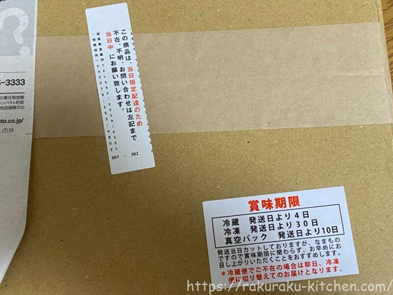 冷凍で届きます。今回は12月上旬に購入して、年末に食べたので約1か月自宅の冷凍庫に寝かせていましたが、全然大丈夫でした。