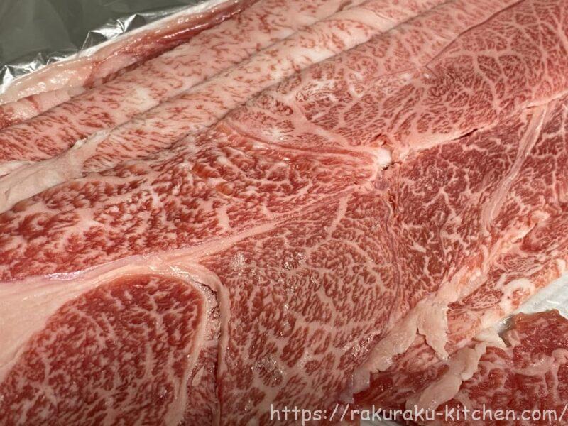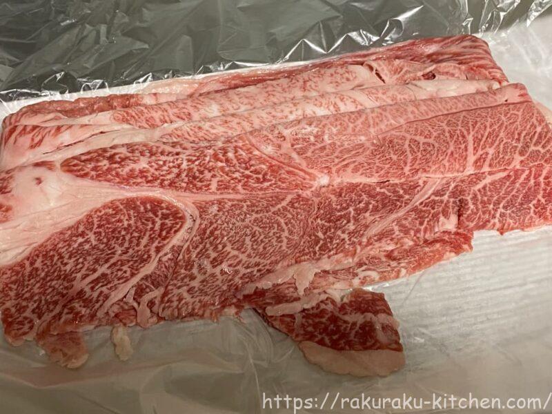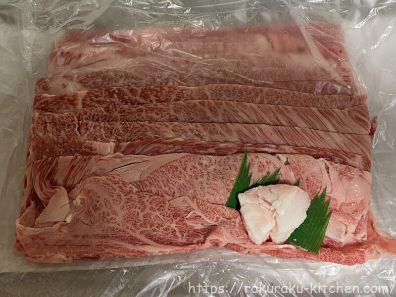 「ヒライの黒毛和牛」のすき焼き・しゃぶしゃぶ用をすき焼きで食べましたが、霜降り肉なのにあっさりしていて美味しかったです。