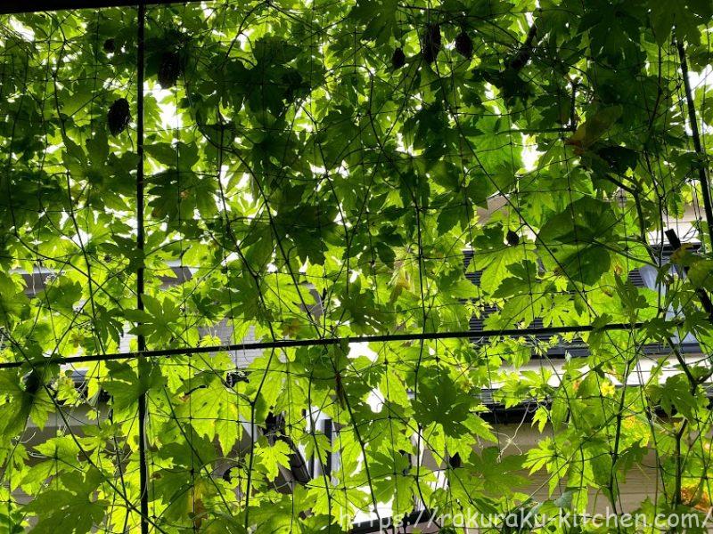 - 8/1(植え付け73日後):グリーンカーテンがいい感じ