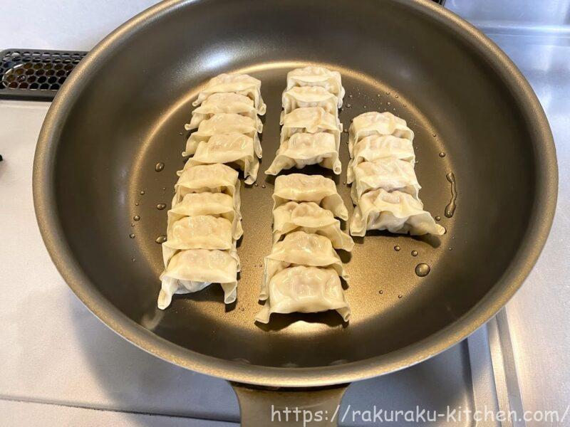 上記は26㎝フライパンですが、この倍の2パック(40個)は一度に焼けそうです。