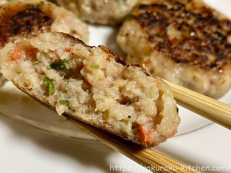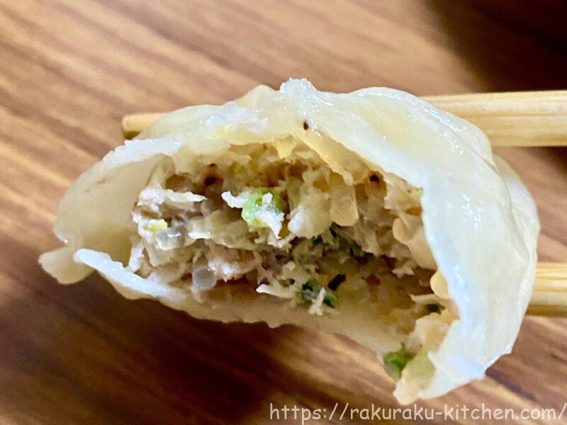 小ぶりですが、具がたっぷり入っているので食べ応えがあります。写真では肉汁が写っていませんが、実際には肉汁がもっと入っています。