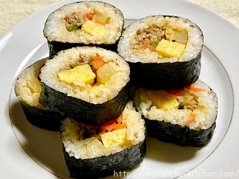 自家製プルコギソースとたくさんを使用し、6種類の具材がたっぷり入ったキンパです。