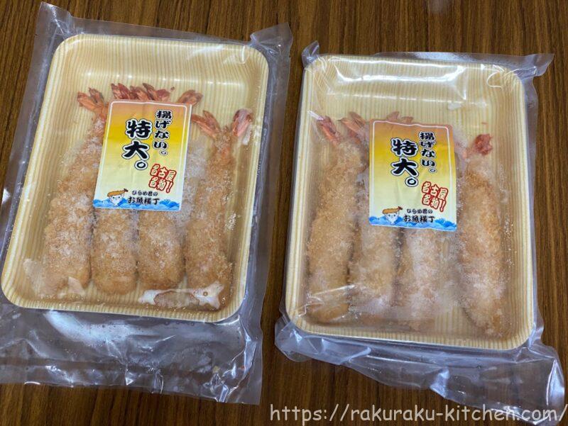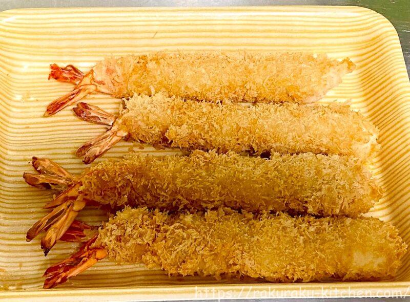 揚げたてとほぼ同じクオリティのプリプリの特大エビフライです。