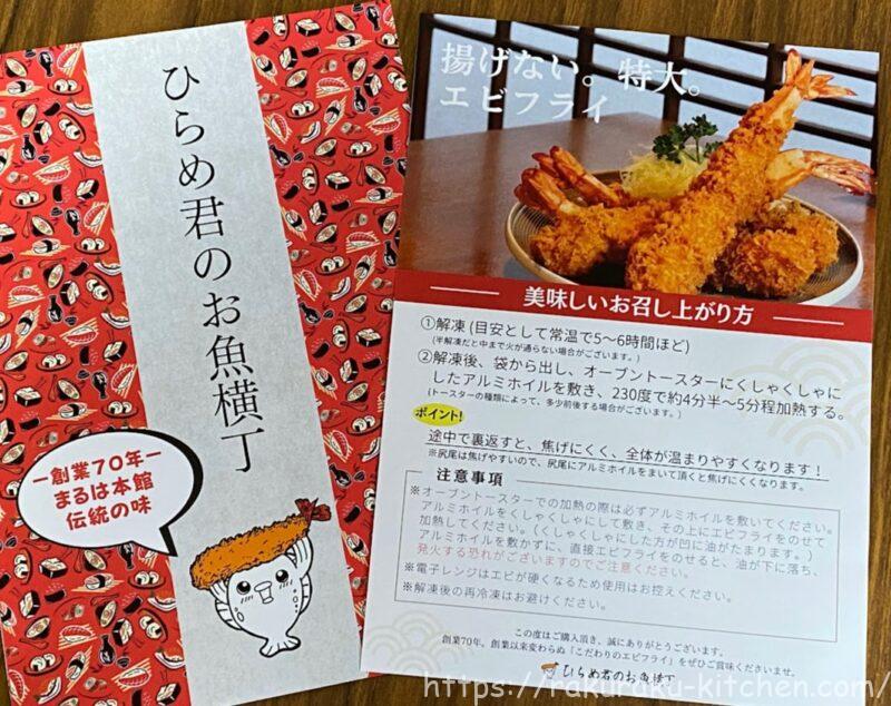 以前に「ひらめ君のお魚横丁」の特大エビフライを紹介しました。とても美味しいのですが、油で揚げるのがちょっと面倒でした。