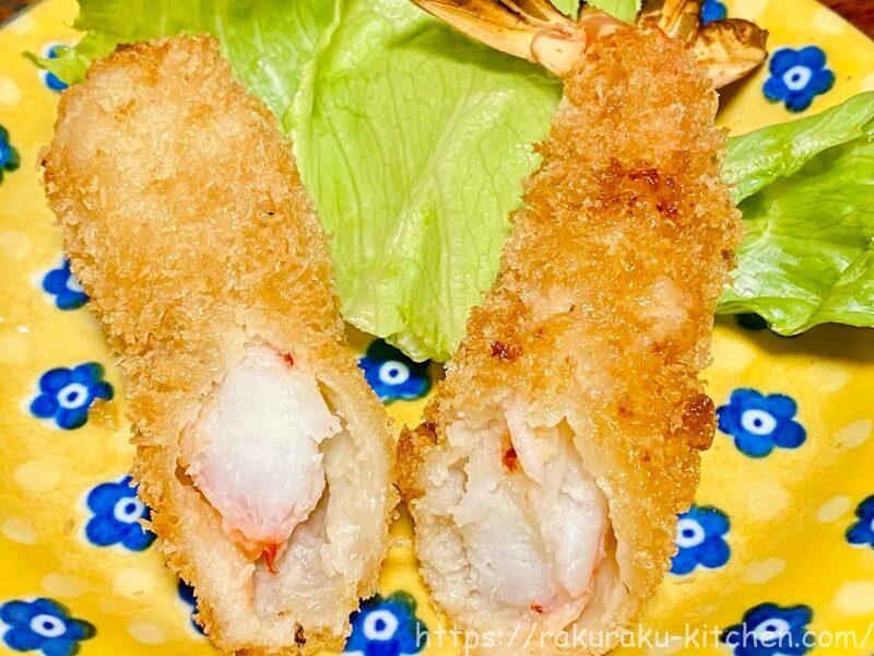 今回、すでに揚げたバージョンが新販売されたとのことで早速試してみました。オーブントースターで5分温めるだけの簡単調理で美味しいエビフライができます。