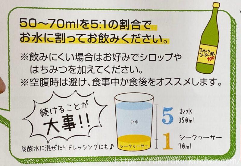 飲み方や希釈は自由なので、自分の飲みやすい方法で飲めばよいとのことです。
