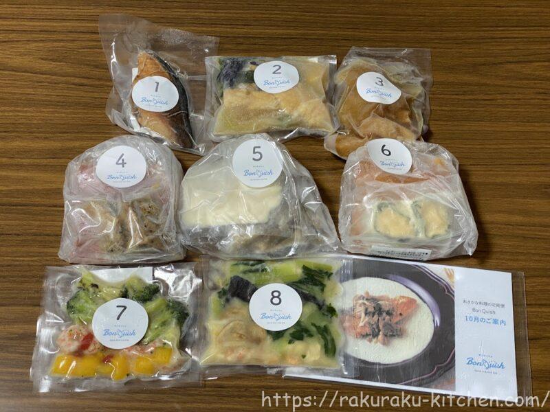 月に1度、8品×1セットが冷凍定期便で自宅に届くサービスです。