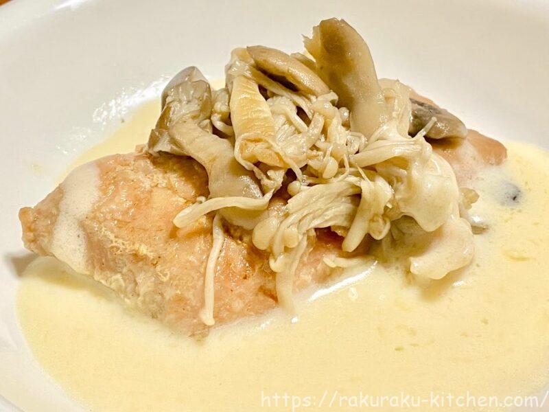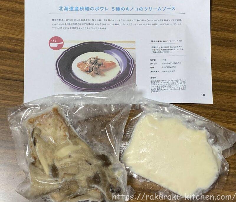 - 北海道産秋鮭のポワレ 5種のきのこのクリームソース