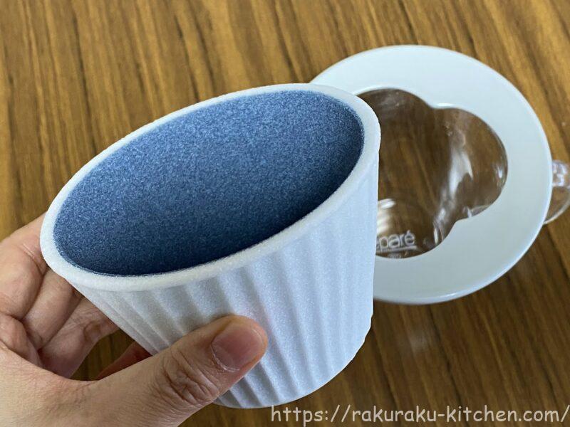 保護フィルターを使うと、カップに傷がつかずに入れることができ、また、フィルターがカップにはまってしまうこともなく、カップにたっぷりコーヒーをドリップすることができます。