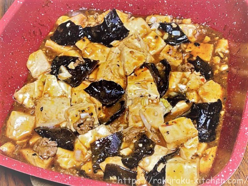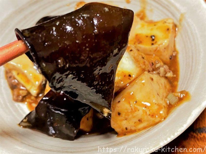 麻婆豆腐の最後に加えるだけで食感のよいキクラゲも楽しめます。