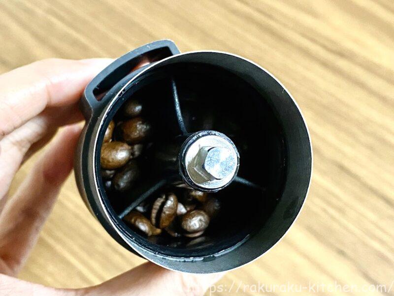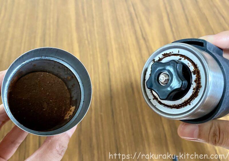 一度に挽ける量は、コーヒー豆をいっぱいに入れて2~3杯分です。私はいつも1杯分を入れるのでちょうどよい大きさです。