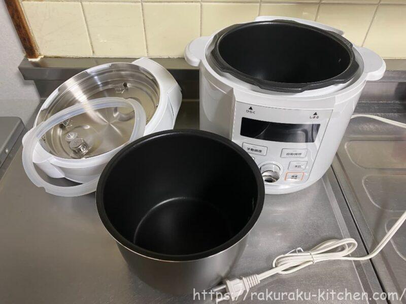 本体は『本体・なべ・フタ』から構成されます。炊飯器とほぼ同じです。