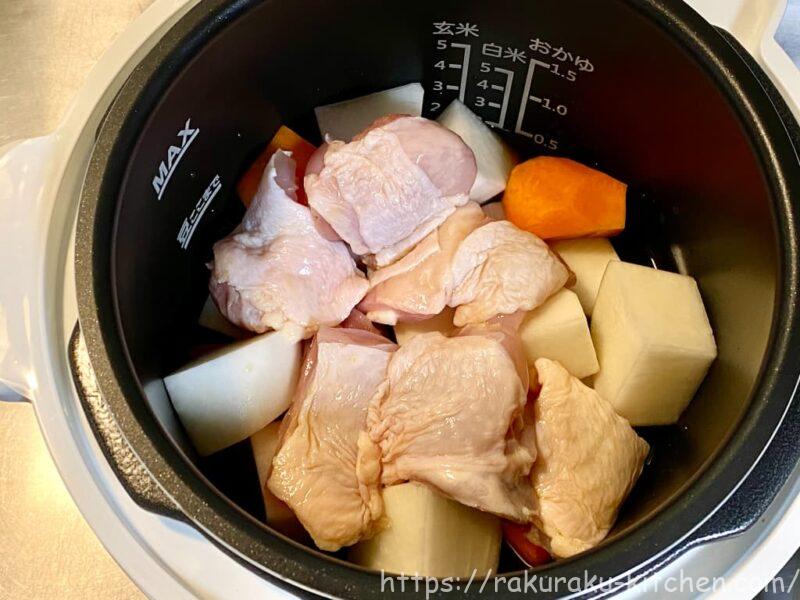 鍋に材料をいれて、自動調理23番を選択して、あとはほったらかしでOK!