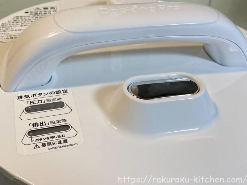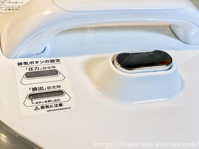圧力調理をする場合には排気ボタンと圧力ピンを確認します。