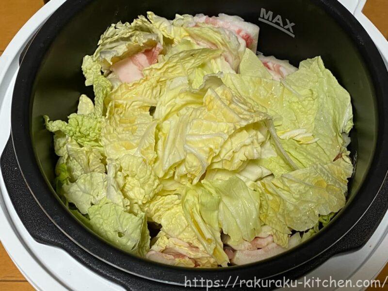 鍋に白菜と豚肉を加えて、レシピ番号12番を選択して、圧力調理スタート!