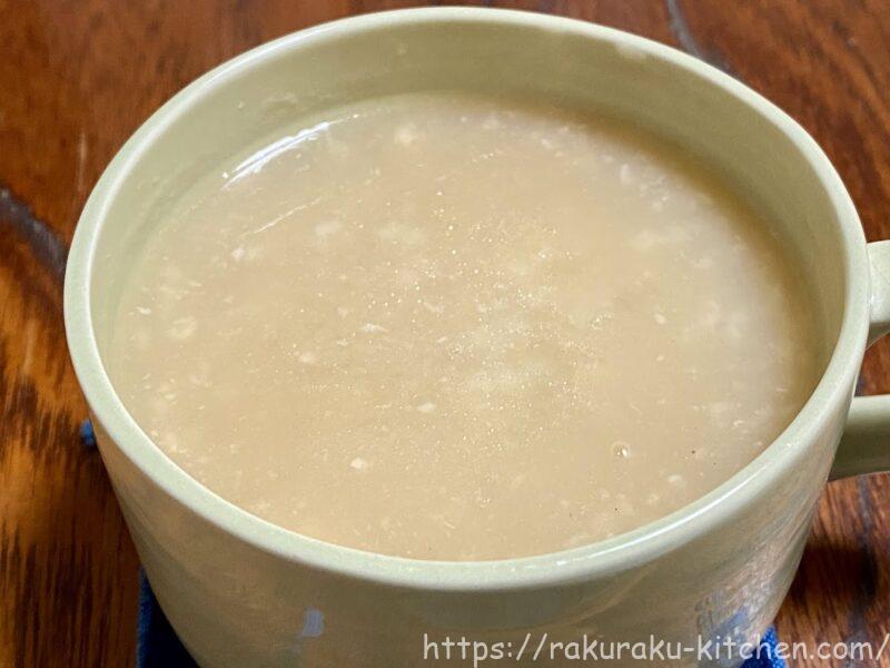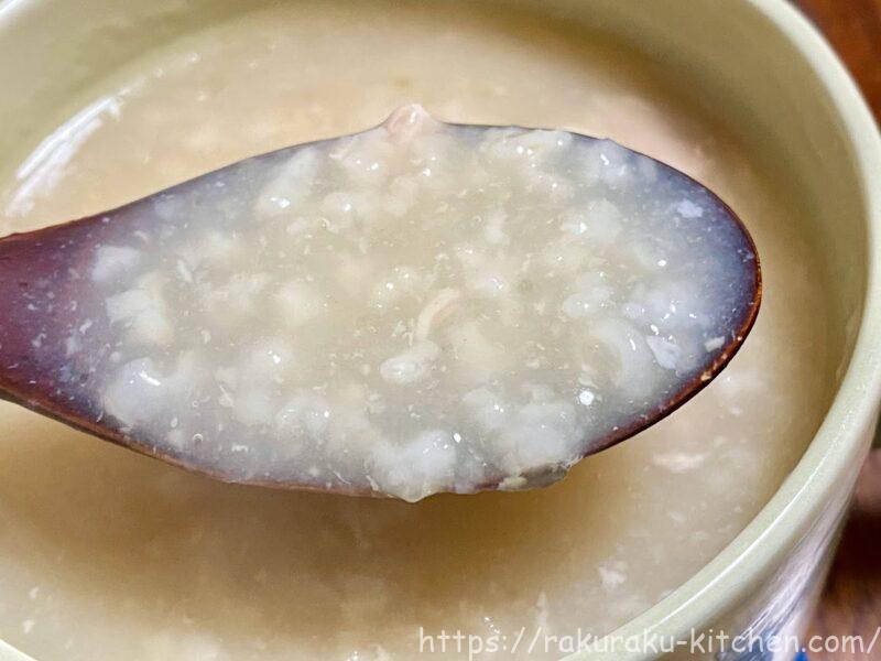 スープの中に鶏肉とお米が入っています。