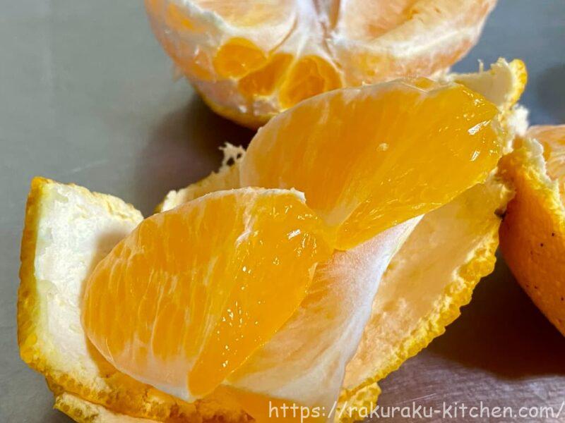 中の皮は温州ミカンよりも薄くて高齢の母でも食べることができました。