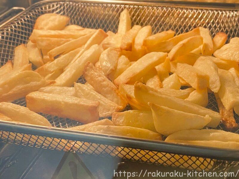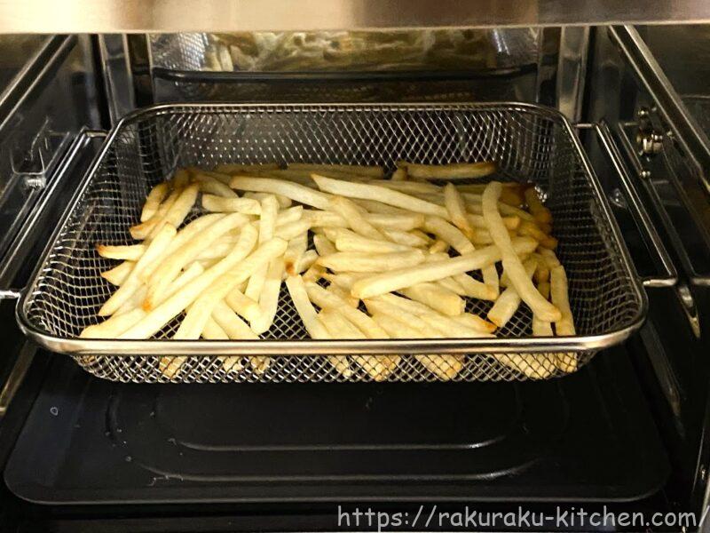 回転バスケットでクルクル回るのが楽しくて、使い始めた初期は回転バスケットでフライドポテトを焼いていましたが、メッシュバスケットでもきれいに焼けることがわかりました。メッシュバスケットのほうが設置や洗いが簡単なので今はポテトを焼くときはメッシュバスケットを使っています。