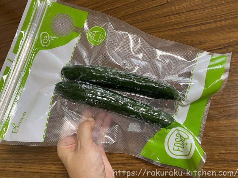 きゅうりや人参なども丸ごと真空パックに入れておけば、そのまま保存するより新鮮で長持ちします。