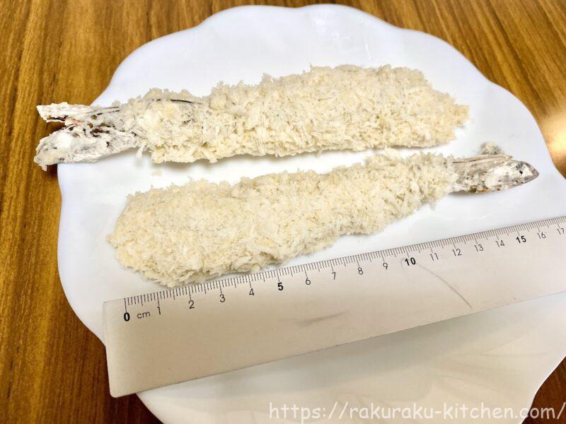 冷凍状態で長さを計ったら、約17cmでした(尻尾までいれて)。どれも同じくらいのサイズなので、HPに記載されている約16cmに偽りはありません。