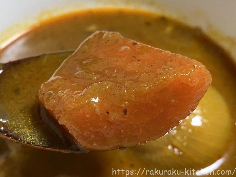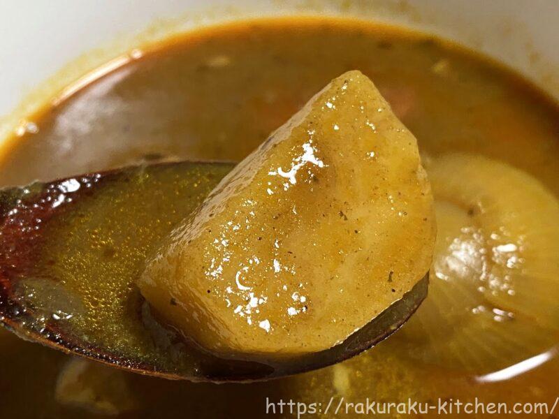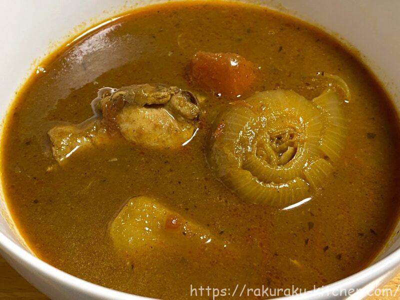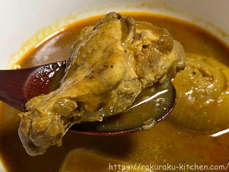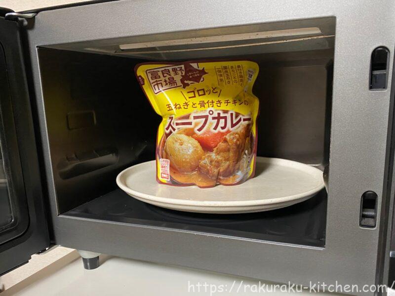 電子レンジで袋ごと温めるだけで食べられる「富良野市場 ゴロッと玉ねぎと骨付きチキンのスープカレー」を紹介します。名前の通り、大きな具がゴロっと入っていて、味もとても美味しいです!