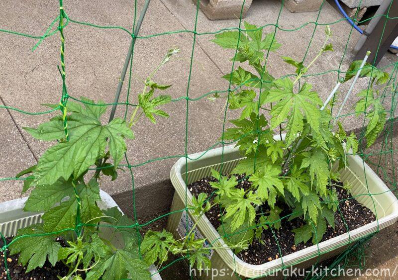 農協で購入した「白ゴーヤ、島さんご、沖縄れいし」の3株は順調に育っています。葉っぱも増えたので数日前に摘心をしました。