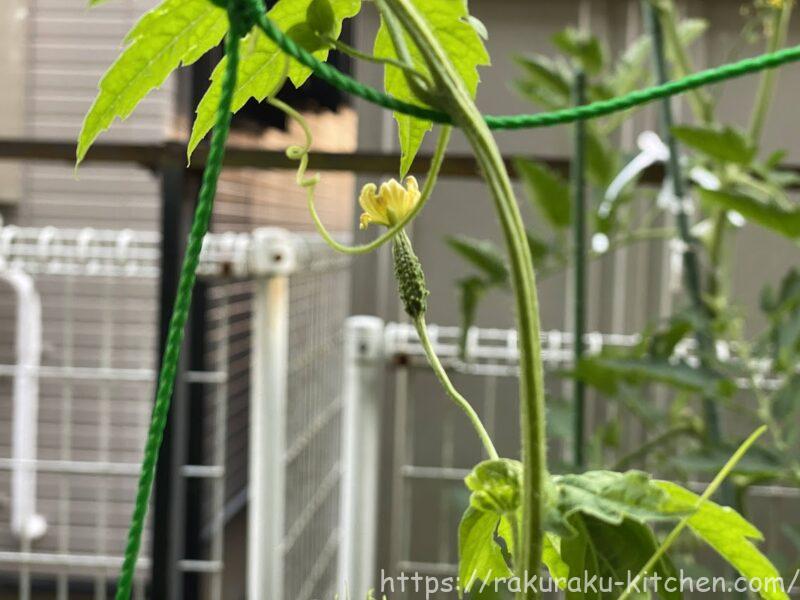 あとから植えたアバシゴーヤも順調に生育しています。雄花がちらほらと咲き出しています。