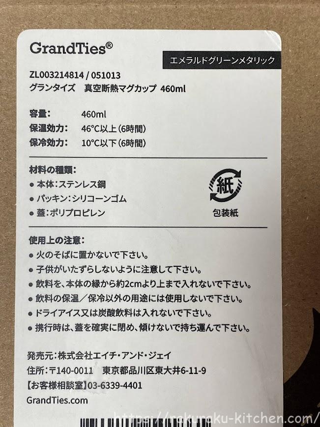 こちらがGRANDTIES(グランタイズ )のタンブラーです。