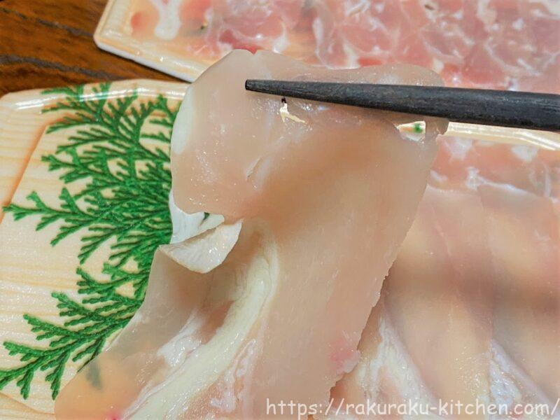とても新鮮な色です。下の写真は胸肉。薄さは約3mmだそうです。