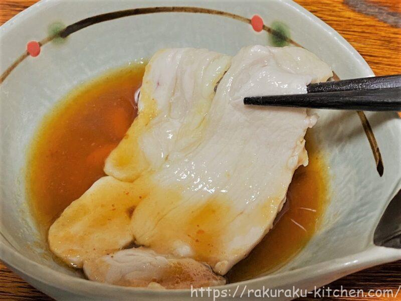 もも肉なので胸肉よりもさらに柔らかいです。胸肉よりは脂肪分が多いですが、こちらもかなりあっさりしています。