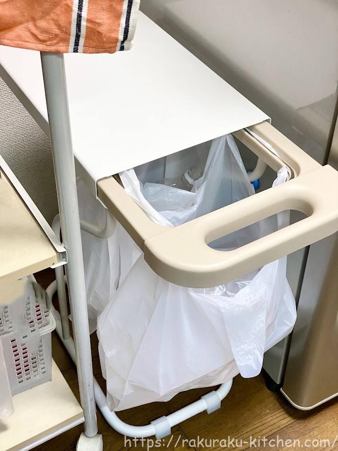 引き出し部分を手前にスライドさせるとゴミ袋を引っ掛けることができます。