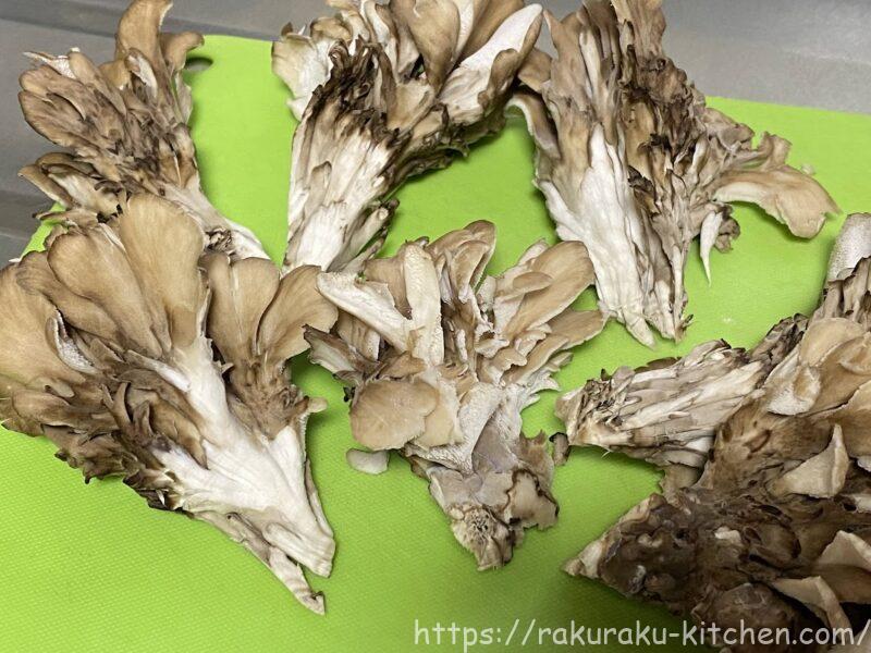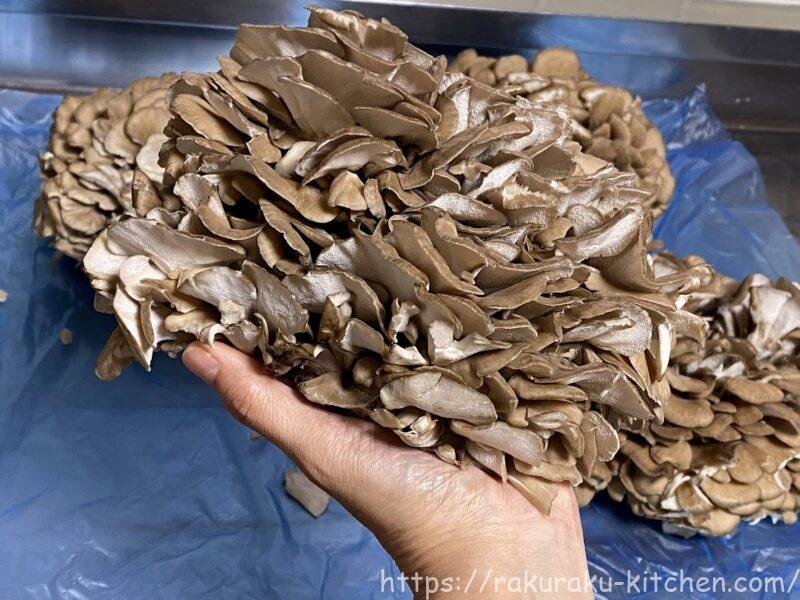 スーパーに売っている舞茸とは比べ物にならないほどシャキッとしていてボリュームがあります。
