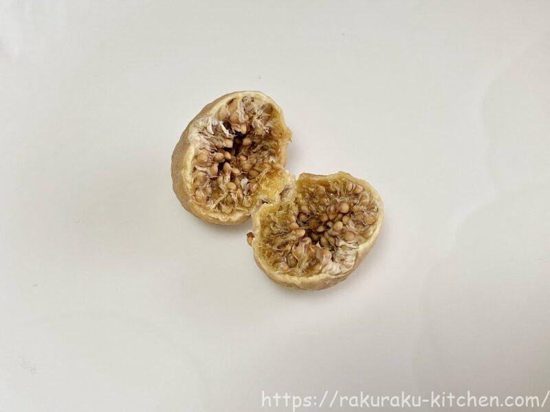 小粒のいちじくが袋いっぱいにコロコロ入っています。粒の大きさは揃っていてどれもほぼ同じサイズ感です。