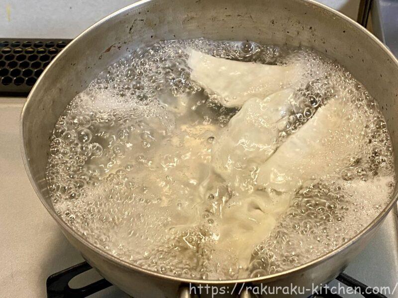 茹で上がった餃子をスープや鍋に入れたり、ポン酢などお好みで頂きます。