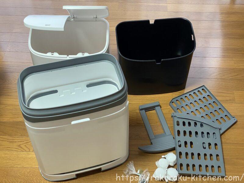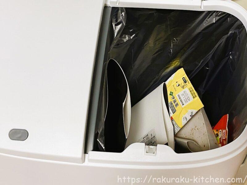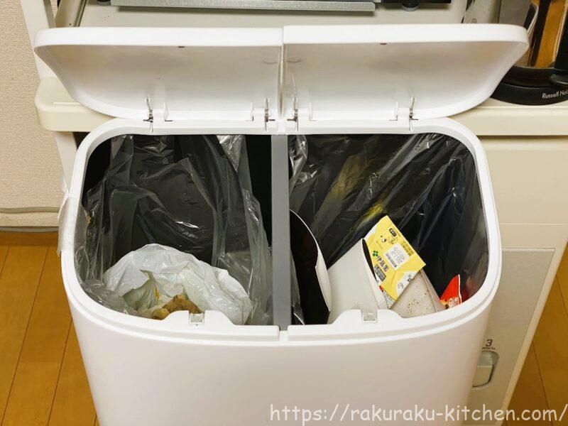 上段は左に燃えるゴミ(生ごみなど)、右に厚紙を入れています。