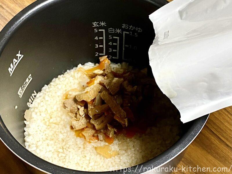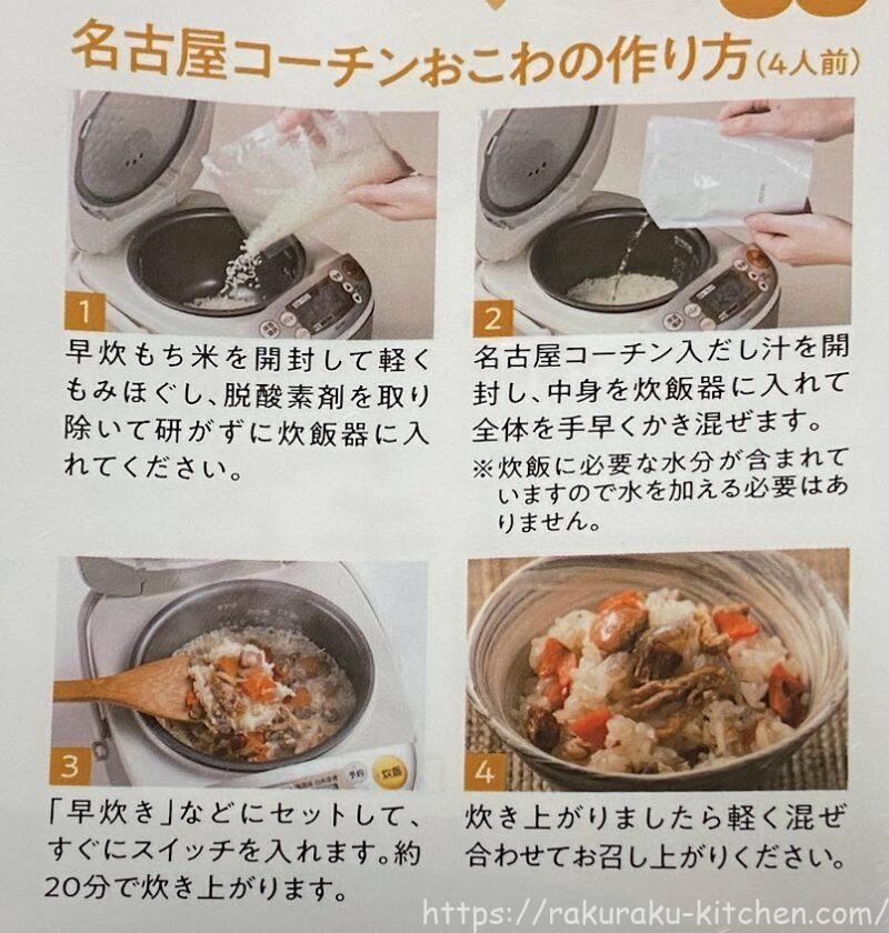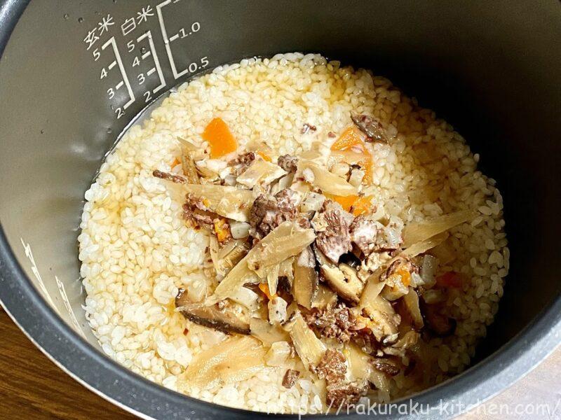 作り方は他のおこわと同様、炊飯器に入れて炊くだけ。