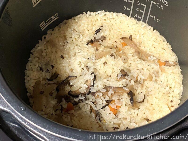 あとは炊飯器の「早炊き」で炊飯するだけです。我が家は電気圧力鍋で炊飯をしており、「早炊き」機能がついていないので、通常の「炊飯」で炊きましたが、美味しく炊けました。