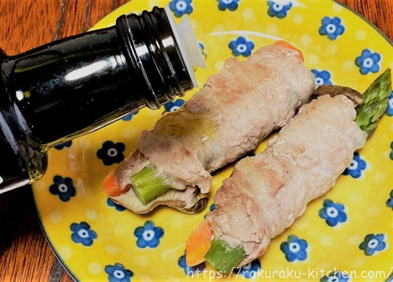 塩コショウでシンプルに味付けした野菜の肉巻きにもかけてみましたが、香りが引き立ってより美味しく感じました。