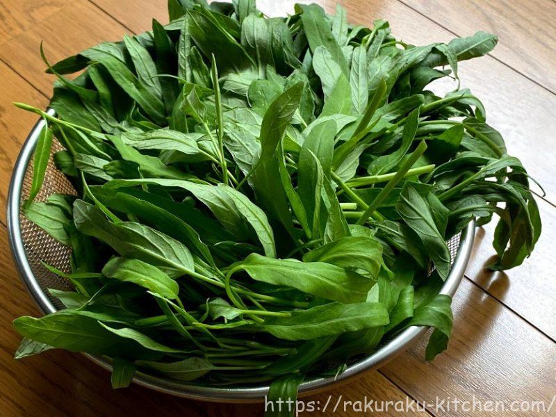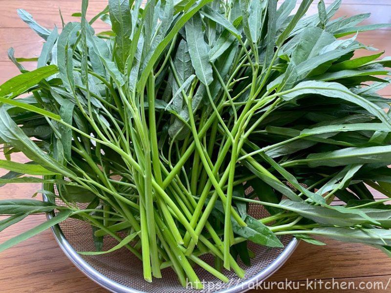 去年はアブラムシがついてしまったのですが、今年は虫もつかずにきれいな空心菜が収獲できました。