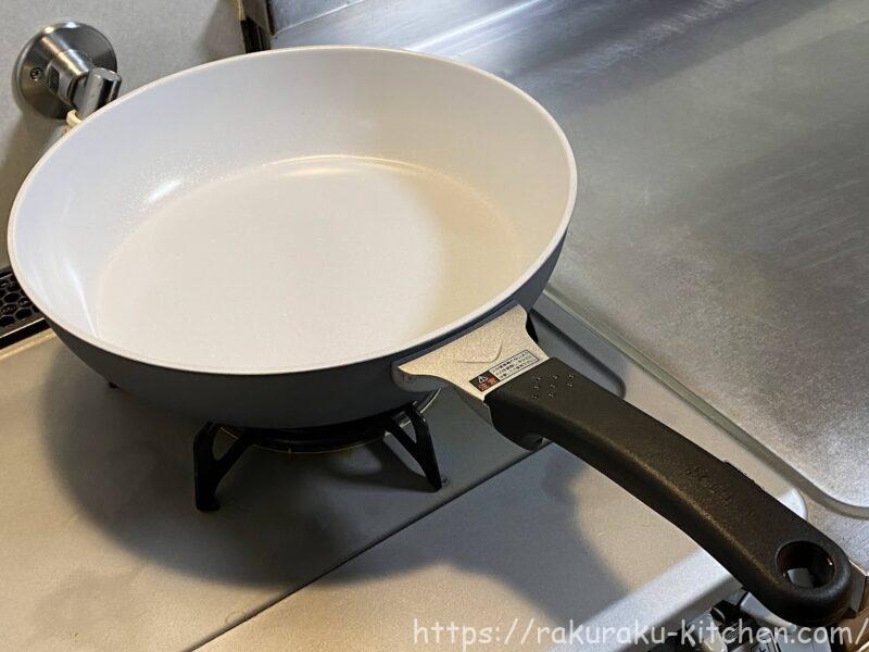 セラミック加工された京セラのセラブリッドフライパンを紹介します。サイズはいろいろありますが、今回紹介するのは26cmです。