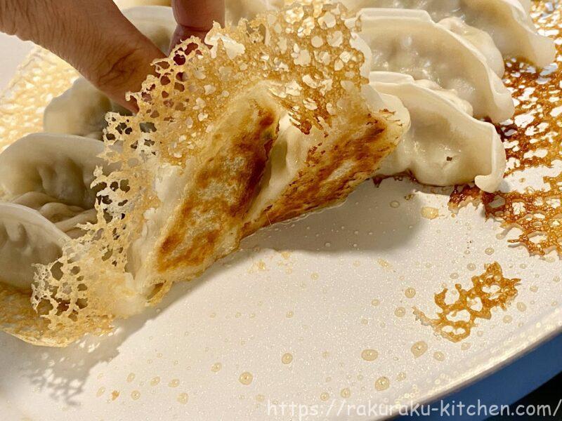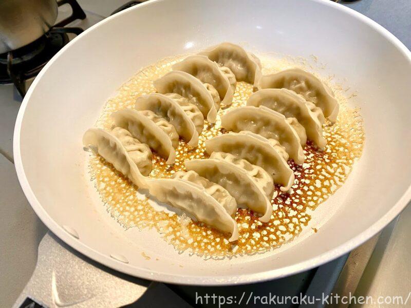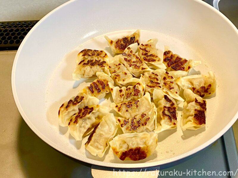 下記は小さな一口餃子ですが、表面カリカリで焼き色がついて、美味しく仕上がりました。