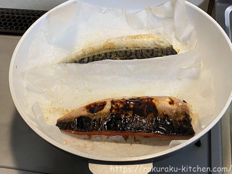 クッキングシートを敷いて生魚の切身をのせて焼けば、ふっくら美味しい焼き魚ができます。