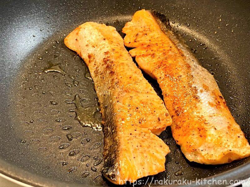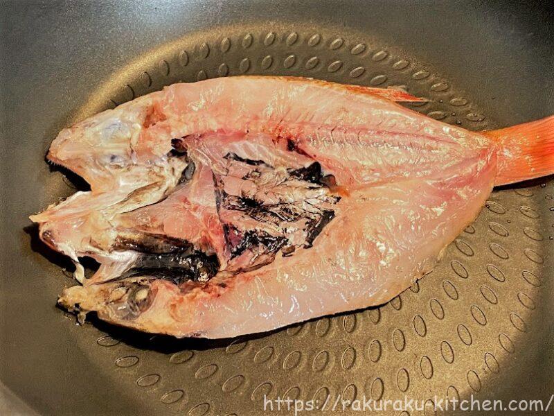 魚の干物はクッキングシートをひかなくてもくっつかずに蒸し焼きができます。