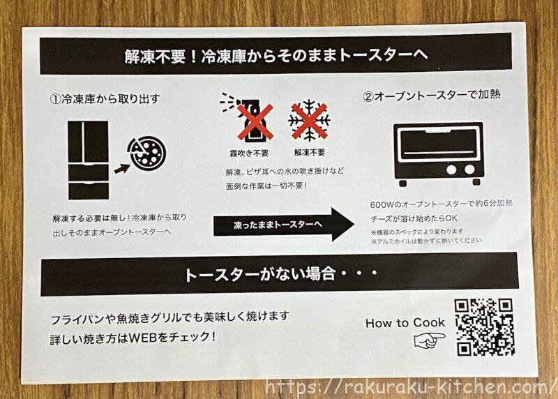 サクサク食感の場合は、冷凍庫からピザを出して凍った状態でオーブントースターで焼きます。