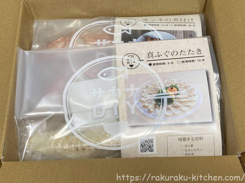 箱を開けるとこんな感じで魚の調理キットが2袋入っています。