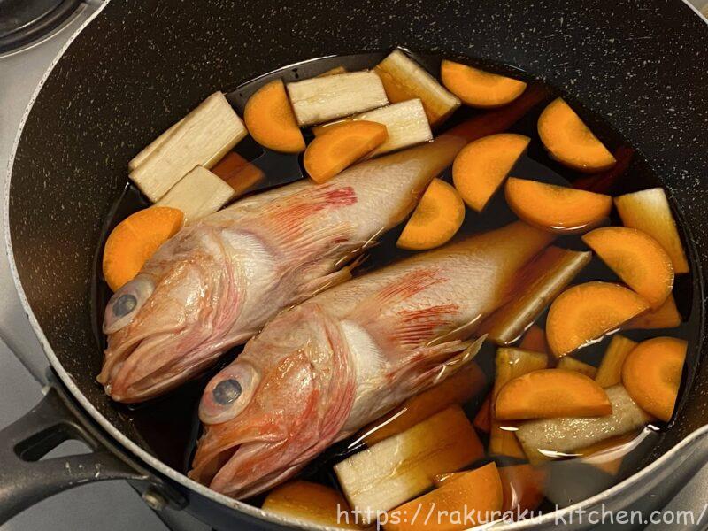 水、人参、ゴボウ、絹さやは自分で準備します。今回は絹さやはなかったので入れませんでした。このあたりは適当で大丈夫です。