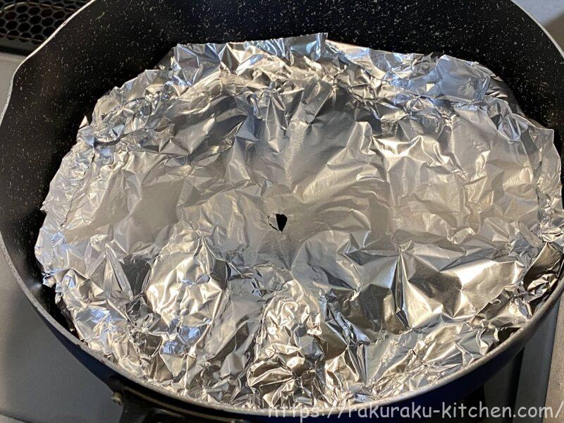 アルミホイルで落し蓋をして、約12分煮込みます。