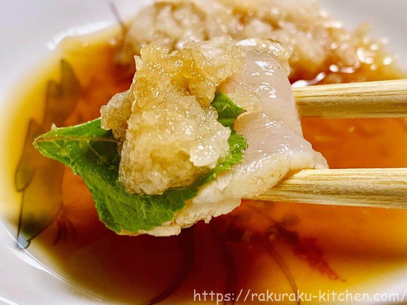 「真ふぐのたたき」と「キンキの煮つけ」の2つの地魚メニューが入っていました。