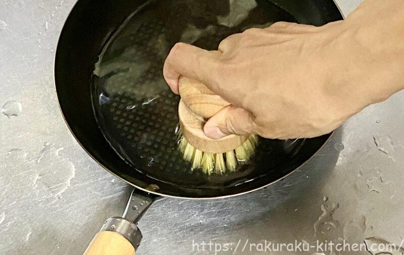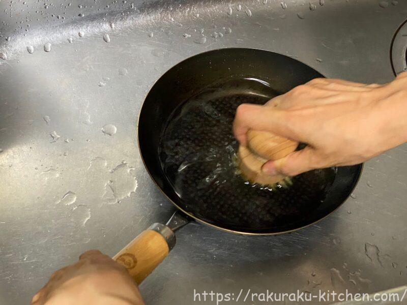 鉄フライパンを洗うのに使いやすい取っ手付きの天然素材のタワシを紹介します。これまでは普通のタワシを使っていましたが、取っ手付きはやっぱり使いやすいです!