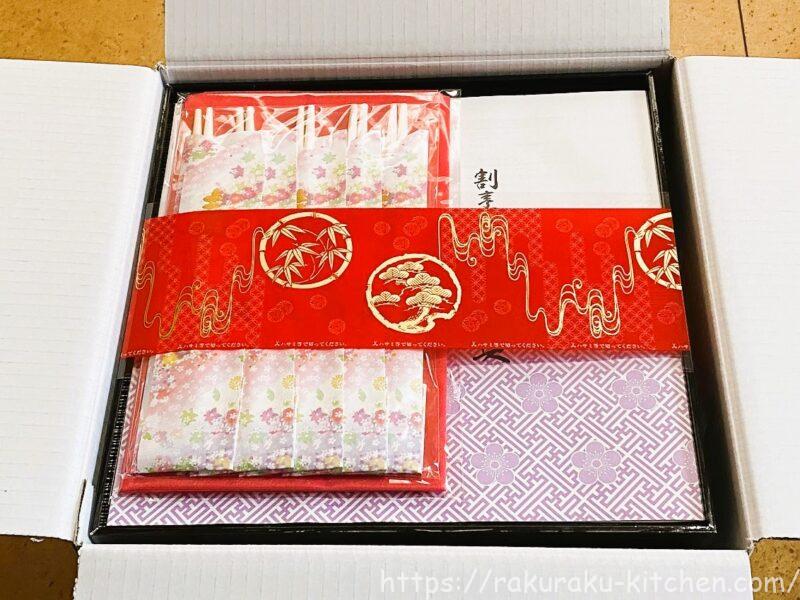 おせちの他に、お品書き/風呂敷/祝い箸5膳が入っていました。